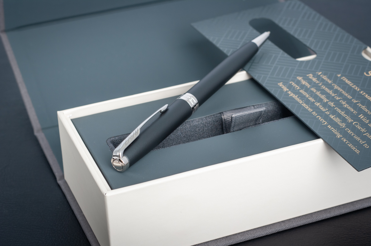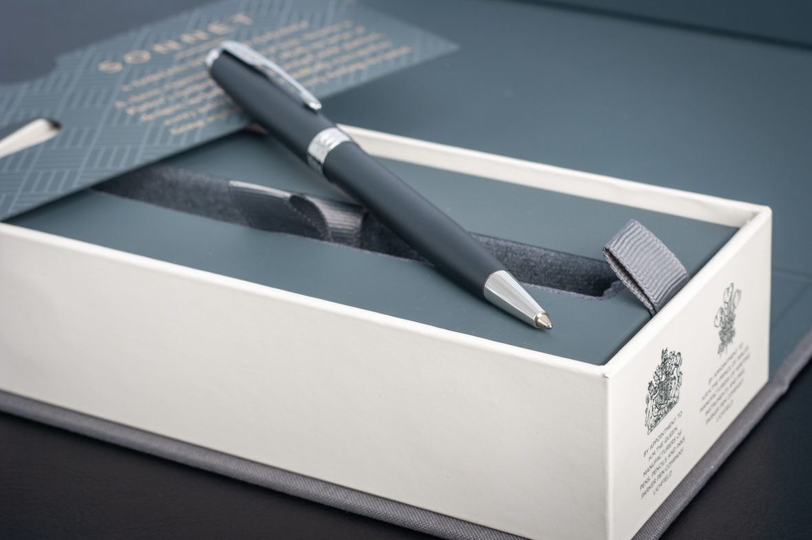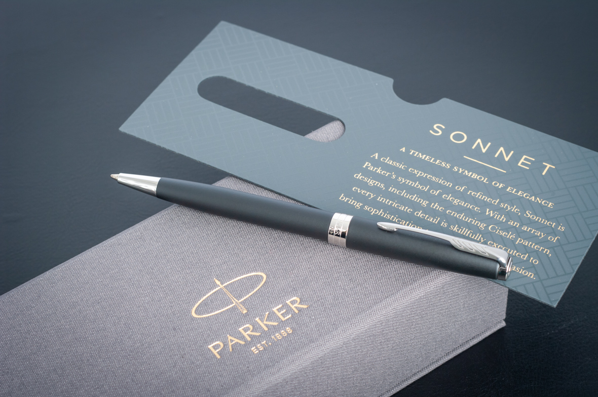 Шариковая ручка Parker Sonnet Matte Black CT от официального дилера Parker в Мурманске. Вы можете дополнительно заказать гравировку, которая подчеркнет Вашу оригинальность и придаст памятность статусному подарку. Все ручки Паркер поставляются в фирменном футляре.